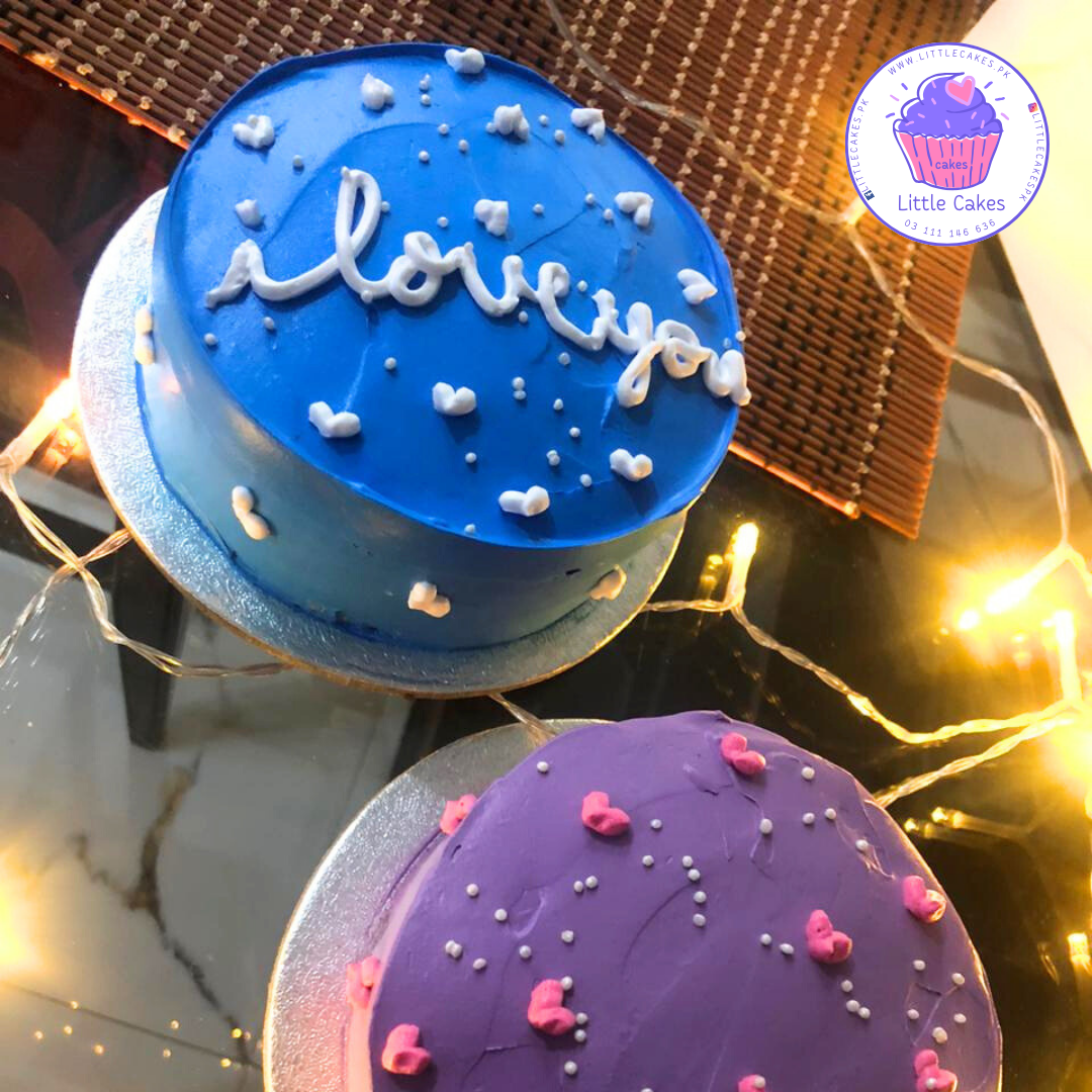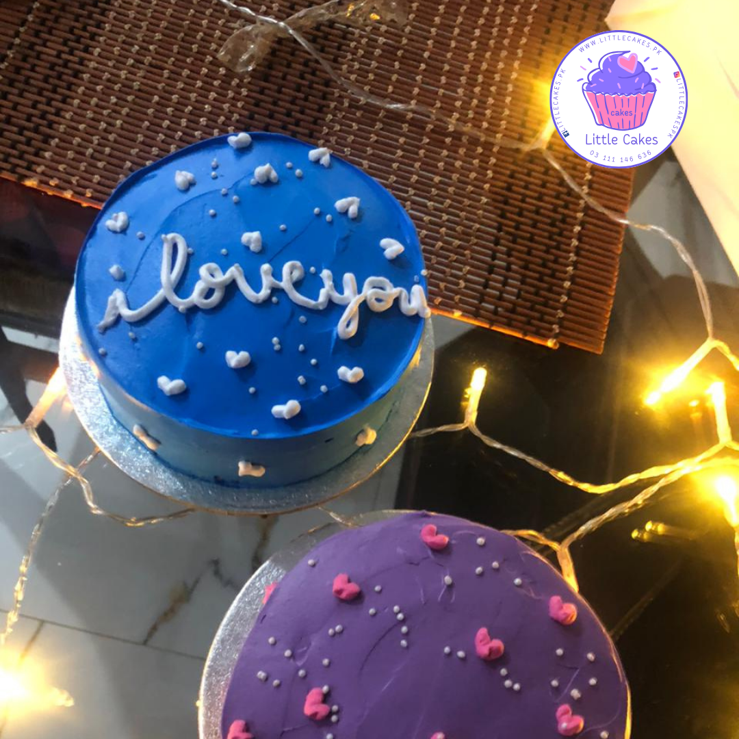 White ILY on Blue Cake. Just place and order and we will be in touch.